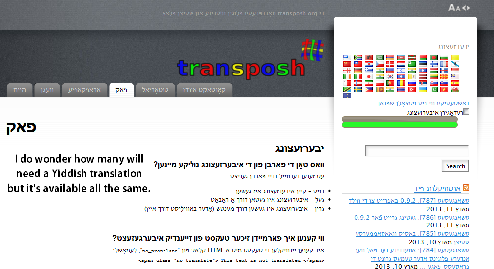 A total of 56 languages are offered. Some are pretty popular such as Arabic and Mandarin. Others I thought were a bit off the wall as a choice. I mean how many web surfers are there who ONLY speak Yiddish (spoken primarily by ultra-orthodox Jews who, if they don’t speak any other language probably also shun the Internet completely and no, I don’t have a clue what the screenshot of it below says but I assume it’s reasonably accurate). Still, it’s impressive what these guys offer: