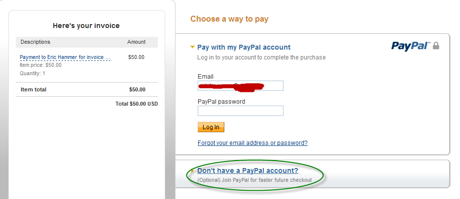 Finally, this is a neat trick for those who need to get paid by someone who for whatever reason doesn’t have and doesn’t want to have a PayPal account but who does have an international credit card (i.e. one that works in the USA – some foreign credit cards are not valid here). Basically, you set up a PayPal invoice for them and you then you send them a bill. When they get the bill, they can click where it says “don’t have a PayPal account?” They’ll be offered the option to either set up a new account or to simply pay with a credit card. I used this option with a client of mine who had a personal PayPal account but didn’t want to set up a corporate account. He simply paid me using his corporate credit card instead. You can set up an invoice by going to the “Request Money” tab on your PayPal homepage.