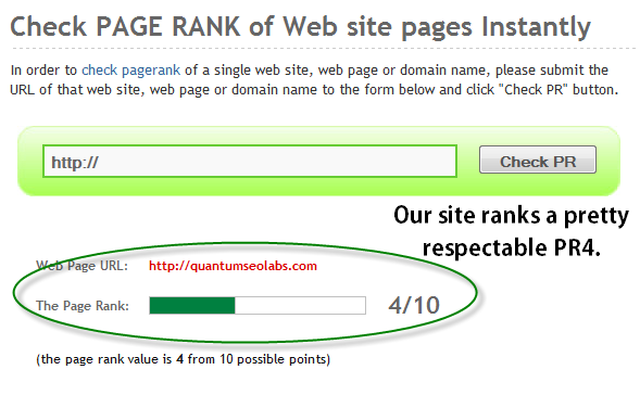 So, first, let’s look at how to check for page rank. This is actually one of the easiest things to do. You can simply go online and find yourself a page rank checker. There are dozens of them. Here is one that I happen to like.