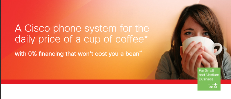 The classic example of this is below. “For about the price of a cup of coffee per day you get peace of mind” or some variation on that. Cisco is selling a networking product by reminding people that the cost works out to just £2.50 per day (about $4). In other words, “about the price of a cup of coffee.” This makes their product, which in reality costs over $3,000 seem eminently affordable.