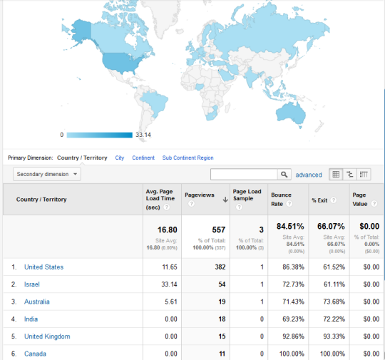 A look at the Map Overlay section of the Site Speed Report can also tell you how long it’s taking your customers in various parts of the world to access your site and how many customers are in fact doing so from each country.