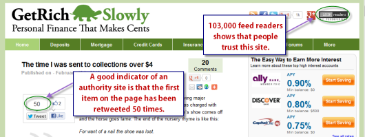 For our purposes, when we talk about an authority website, we’re talking about one which most people would trust as a leader in its industry. So for example, if we were to look at an area I find interesting, personal finance, a good example of a well-respected personal finance authority site would be Get Rich Slowly: