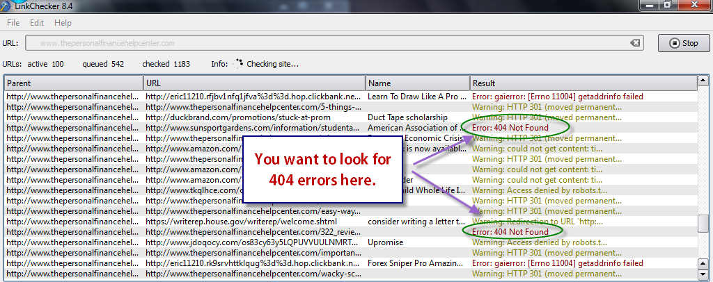 Now, as to finding those dead links, I found a useful little applet called linkchecker on Sourceforge. It’s relatively straightforward. After you install it, you simply enter the URL of the site you want to check and then let it run. It will provide you with a detailed report on everything it finds.