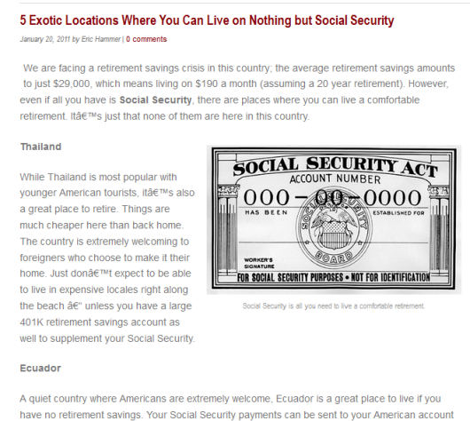Your blog for example may well be a free sample. Let’s say that you run a company which provides financial advice to people who are trying to figure out how to save for retirement. This is a common issue in the United States, where relatively few people have adequate retirement savings available to them. Many people in fact end up stuck living on nothing but social security because that’s all they have at the end of a lifetime of work.